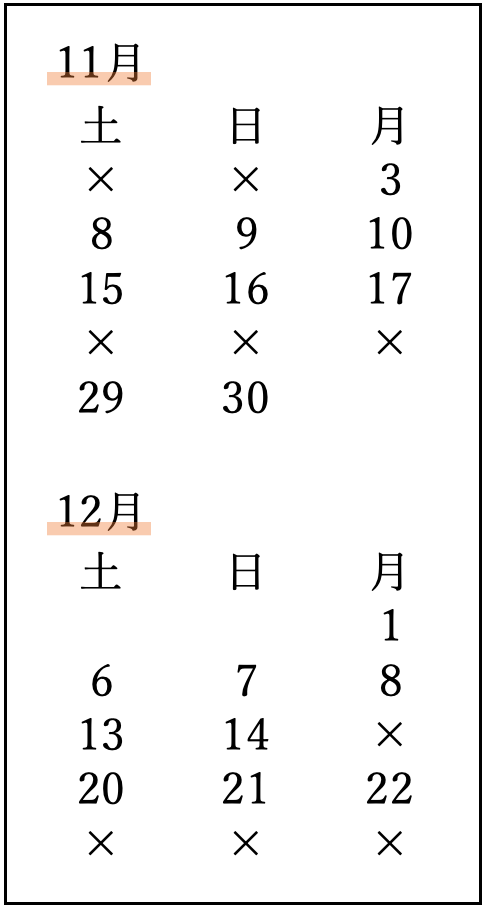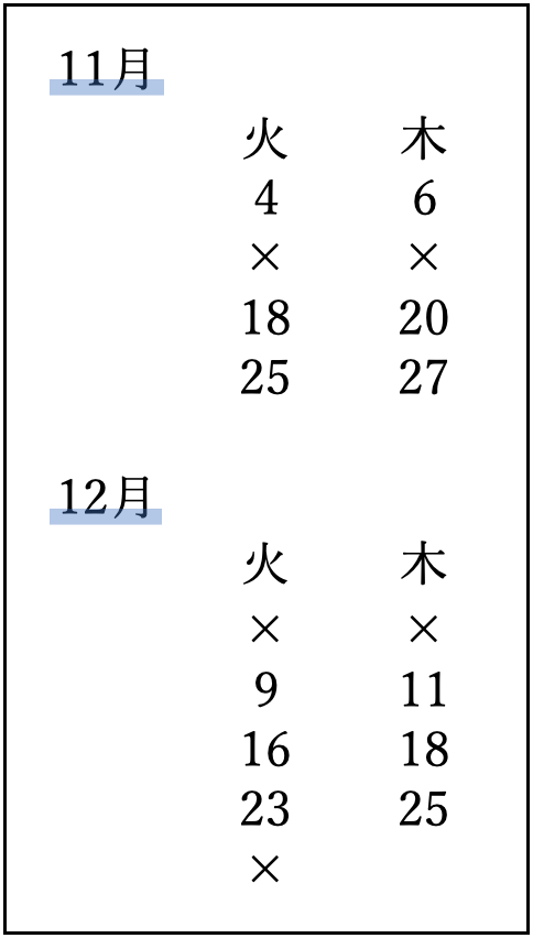 以下、対面(教室)でのお稽古日程です。